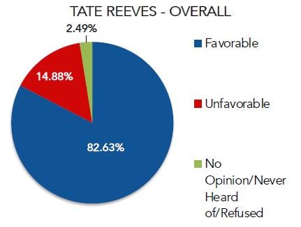 Governor Tate Reeves has nearly a 71% favorability rating with U.S. Senator Cindy Hyde-Smith close to 55%. Hyde-Smith’s Democrat challenger, Mike Espy, sits at just over 40%.