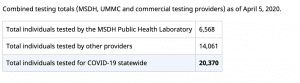 A total of over 20,000 individuals have been tested across the state be either MSDH or private healthcare facilities.