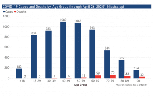 The majority of Mississippians infected are between 60 and 70 years old. The 40 through 50 age group is close behind as well as 70 and above.